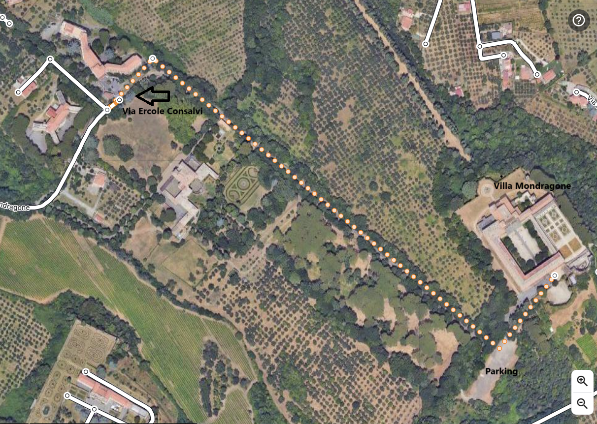 - Begin by walking from Frascati city center to the side gate of Villa Mondragone. You can follow this route: https://maps.app.goo.gl/nXfnx7zgcyFQoRn98